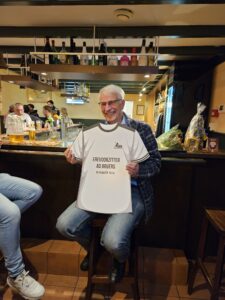 Al vroeg op de avond was er een verrassing. Desiree van den Hout zag live op de pas bijgewerkte over ons-pagina op onze site dat zij het nieuwste lid van verdienste is. Zichtbaar geraakt nam ze een fraaie bos bloemen in ontvangst. En een shirtvormig bord dat ongetwijfeld een mooi plekje krijgt in haar huis.